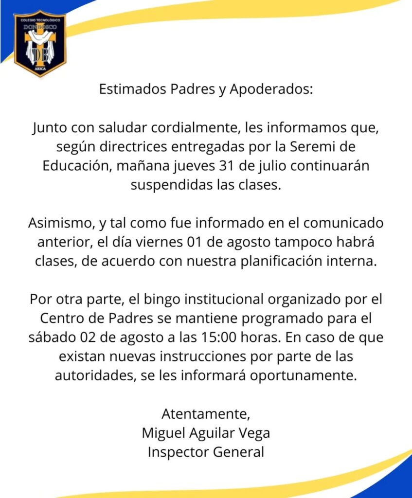 Les invitamos a leer con atención el siguiente comunicado. Agradecemos mantenerse informados a través de nuestros canales oficiales.